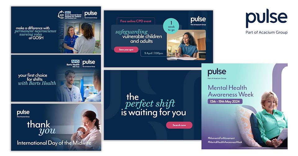Pulse Healthcare is a leading healthcare recruitment agency in the UK, providing high-quality temporary and permanent roles across the NHS and private sectors. I played a key design role during the company’s full rebrand, contributing to the development and rollout of a refreshed visual identity that elevated brand recognition and audience engagement.