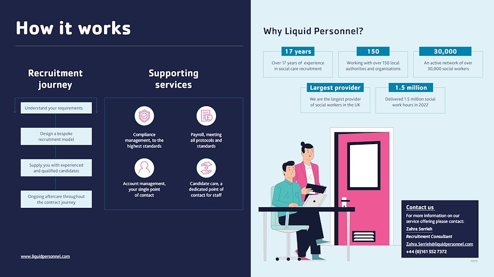 At Liquid Personnel, a leading recruitment specialist for social work and healthcare professionals (part of Acacium Group), I contributed to a range of marketing collateral that supported both candidate engagement and corporate visibility. The agency partners with local authorities, the NHS, fostering agencies and charities to deliver both permanent and agency staffing solutions.